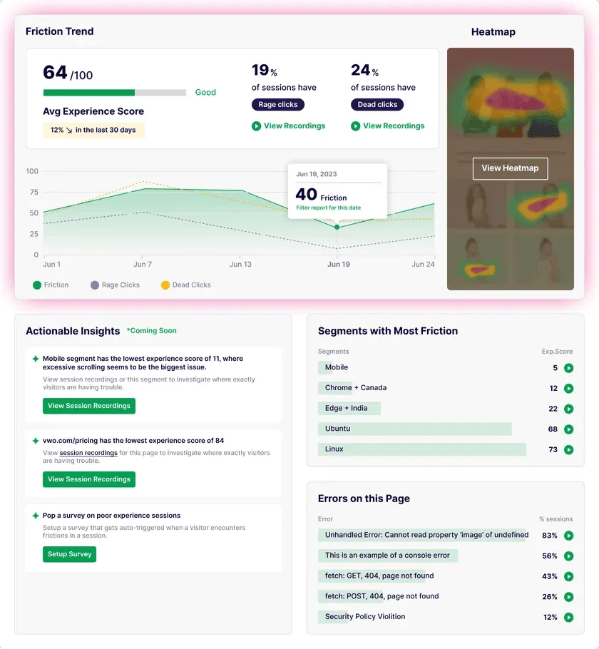 VWO is a complete testing and optimization platform that helps you run experiments and improve your website’s performance. It offers tools for A/B testing, split URL testing, multivariate testing, and personalization. VWO also has built-in heatmaps and session recordings to show user behavior. One of its strong points is its powerful reporting and analytics, which make it easy to understand test results. VWO supports mobile testing and integrates with Google Analytics, CRMs, and other marketing tools. If you want a flexible and detailed testing platform, VWO can help you fine-tune your landing pages for better results.