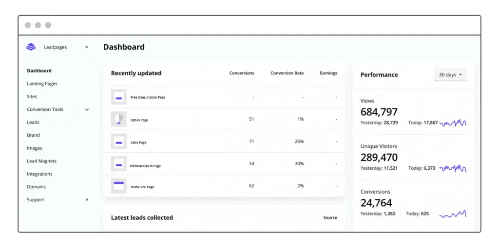 Leadpages is designed for small businesses and entrepreneurs who want to generate leads and sales without a large budget. It offers an easy-to-use builder, hundreds of templates, and built-in conversion tools. One of its strengths is Leadmeter, a feature that predicts how well your page will perform based on best practices. Leadpages also offers unlimited A/B testing on its advanced plans, along with mobile-responsive design and fast page load speeds. It integrates smoothly with email tools, payment processors, and CRMs, making it a versatile solution for growing businesses.